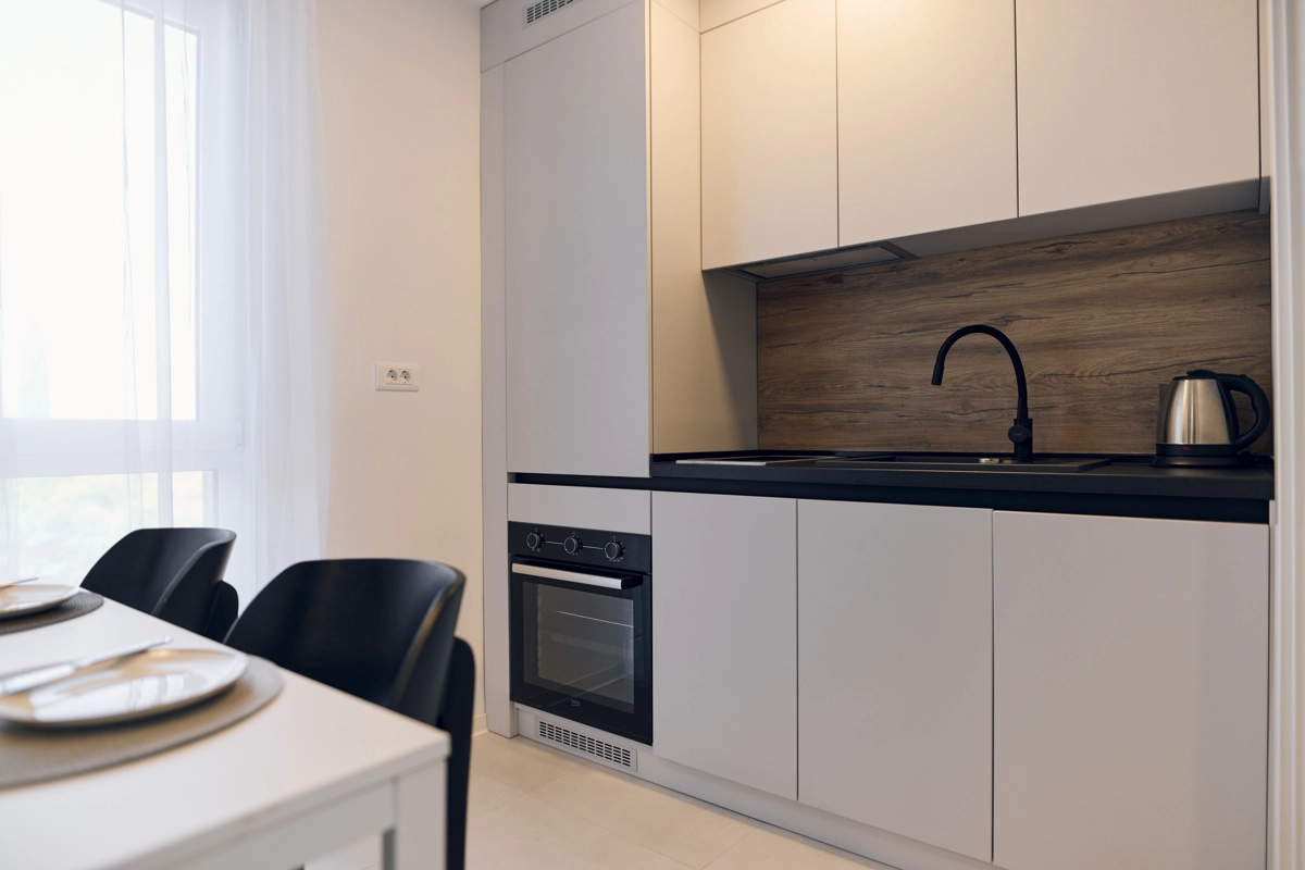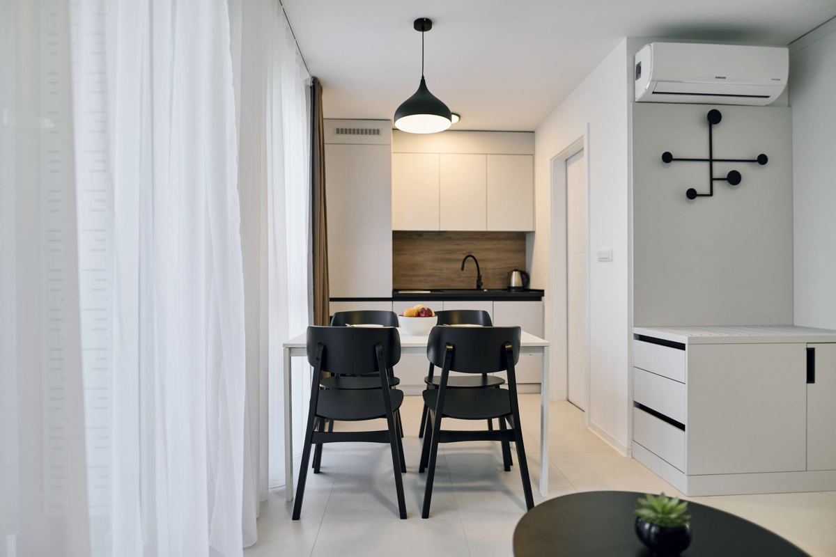 Karakteriziraju ih nježne pastelne boje, moderan namještaj, obilje dnevne svjetlosti i prostrani balkon ili terasa s pogledom na borovu šumu ili planine. Svaki apartman je klimatiziran i sastoji se od jedne ili više spavaćih soba, kupaonice s tuš kabinom i perilicom rublja, dnevnog boravka s udobnim kaučem za dodatne 2 osobe, blagovaonice i funkcionalne kuhinje opremljene hladnjakom. sa zamrzivačem, perilicom posuđa, pećnicom, električnim štednjakom, kuhalom za vodu i osnovnim priborom za kuhanje.