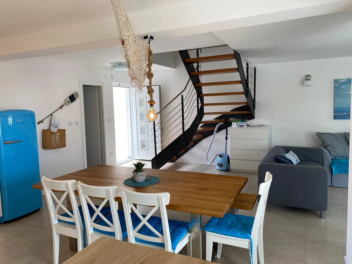 The apartment spreads over 2 floors and features 2 double rooms and two bathrooms. It also has a living room with additional sleeping possibility for 1 person and fully equipped kitchen with access to the balcony. The whole unit is covered by wireless internet and is air-conditioned. Located close to the sea in a peaceful part of Malinska, this accommodation offers you all you need for an ideal stay.