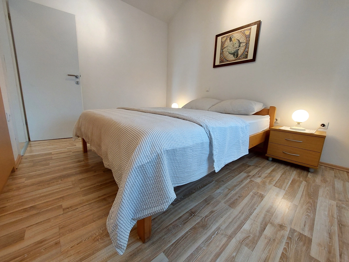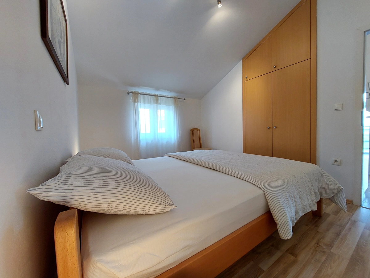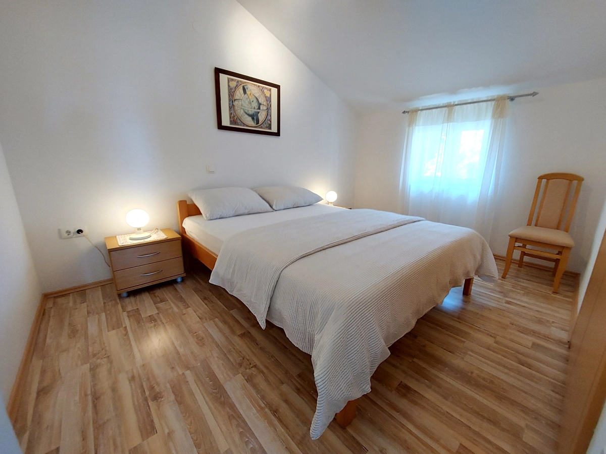 Lijepo uređen i osunčan sastoji se od dvokrevetne sobe, opremljene kuhinje, dnevnog boravka, kupaonice i prekrasnog balkona s pogledom na more i luku. U apartmanu su dostupni klima uređaj, WiFi i Sat TV. Ispred kuće nalazi se parking mjesto rezervirano za vaš automobil.