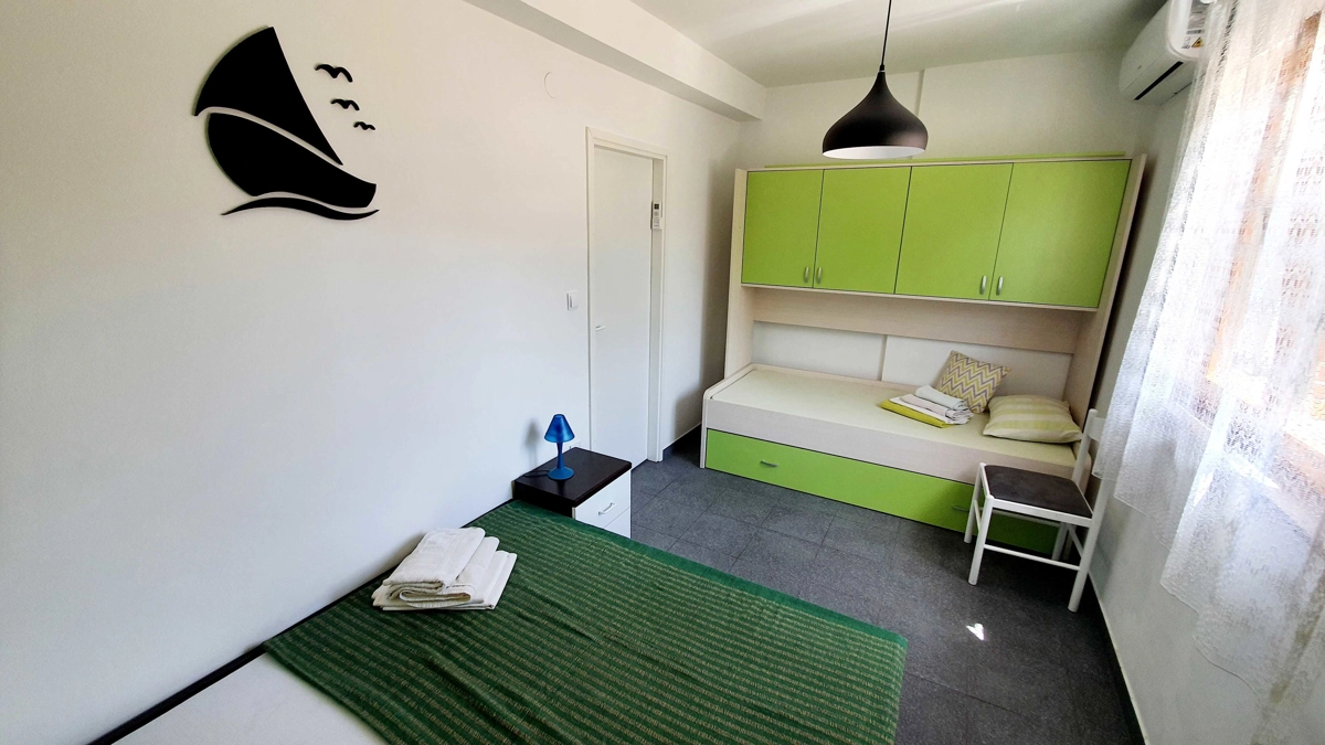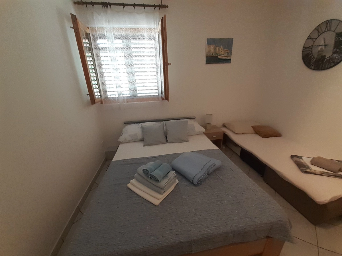 Apartman 1 nalazi se na prvom katu prekrasne obiteljske kuće. Sastoji se od dnevnog boravka, spavaće sobe s bračnim krevetom i krevetom za jednu osobu, potpuno opremljene kuhinje (posuđe, štednjak, pećnica, hladnjak sa zamrzivačem, mikrovalna pećnica, aparat za kavu i kuhalo za vodu) i kupaonice. U apartmanu su dostupni TV, Wi-Fi i klima uređaj. U prostranom vrtu nalazi se roštilj. Parkirno mjesto se nalazi unutar dvorišta i uključeno je u cijenu.