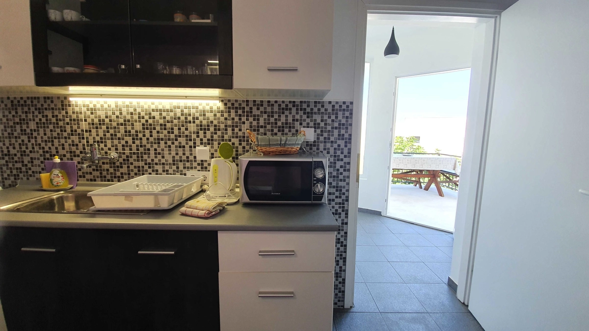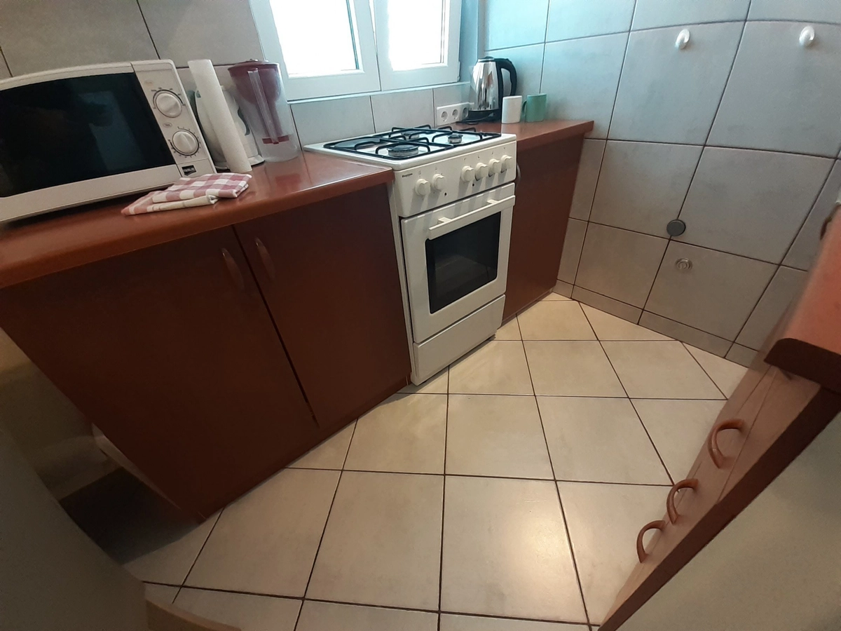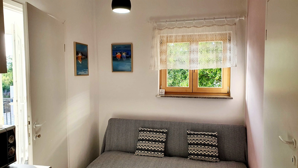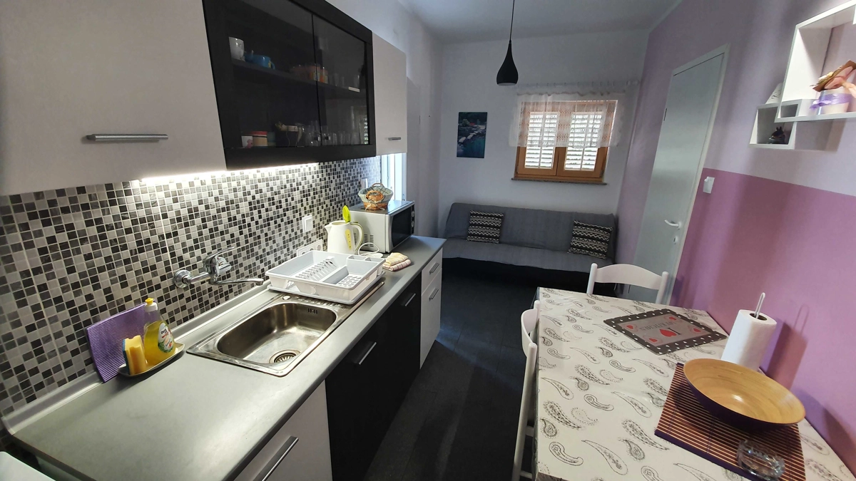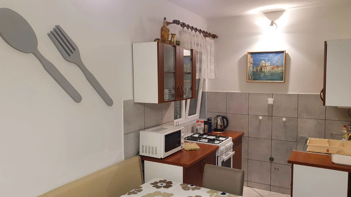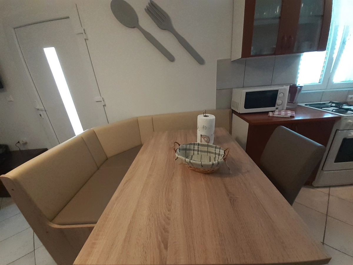 Apartman 2 Sastoji se od dnevnog boravka sa kaučem koji može biti pomoćni ležaj, spavaće sobe sa bračnim krevetom i sofom koja može biti pomoćni ležaj, potpuno opremljene kuhinje (posuđe, štednjak, pećnica, hladnjak sa zamrzivačem, mikrovalna pećnica, aparat za kavu i kuhalo za vodu ) i kupaonica. U apartmanu su dostupni TV, Wi-Fi i klima uređaj. U prostranom vrtu nalazi se roštilj. Parkirno mjesto se nalazi unutar dvorišta i uključeno je u cijenu. Ovaj apartman ima prekrasan balkon opremljen vanjskim namještajem.