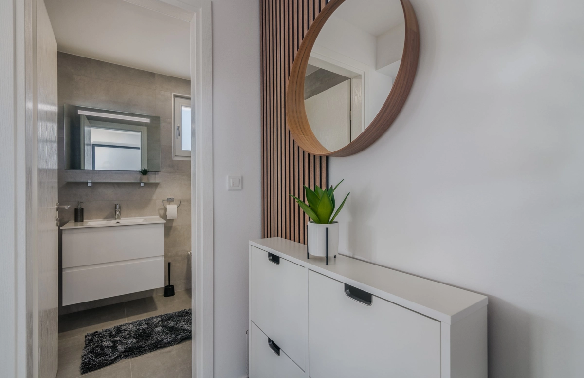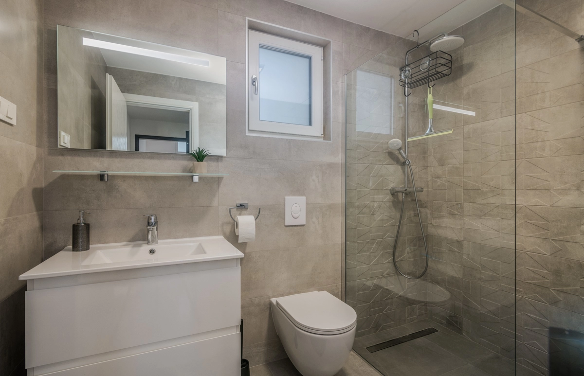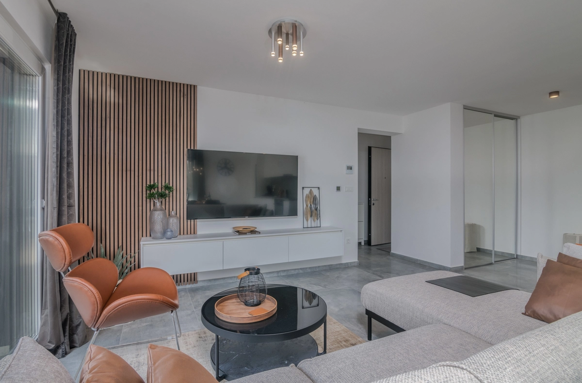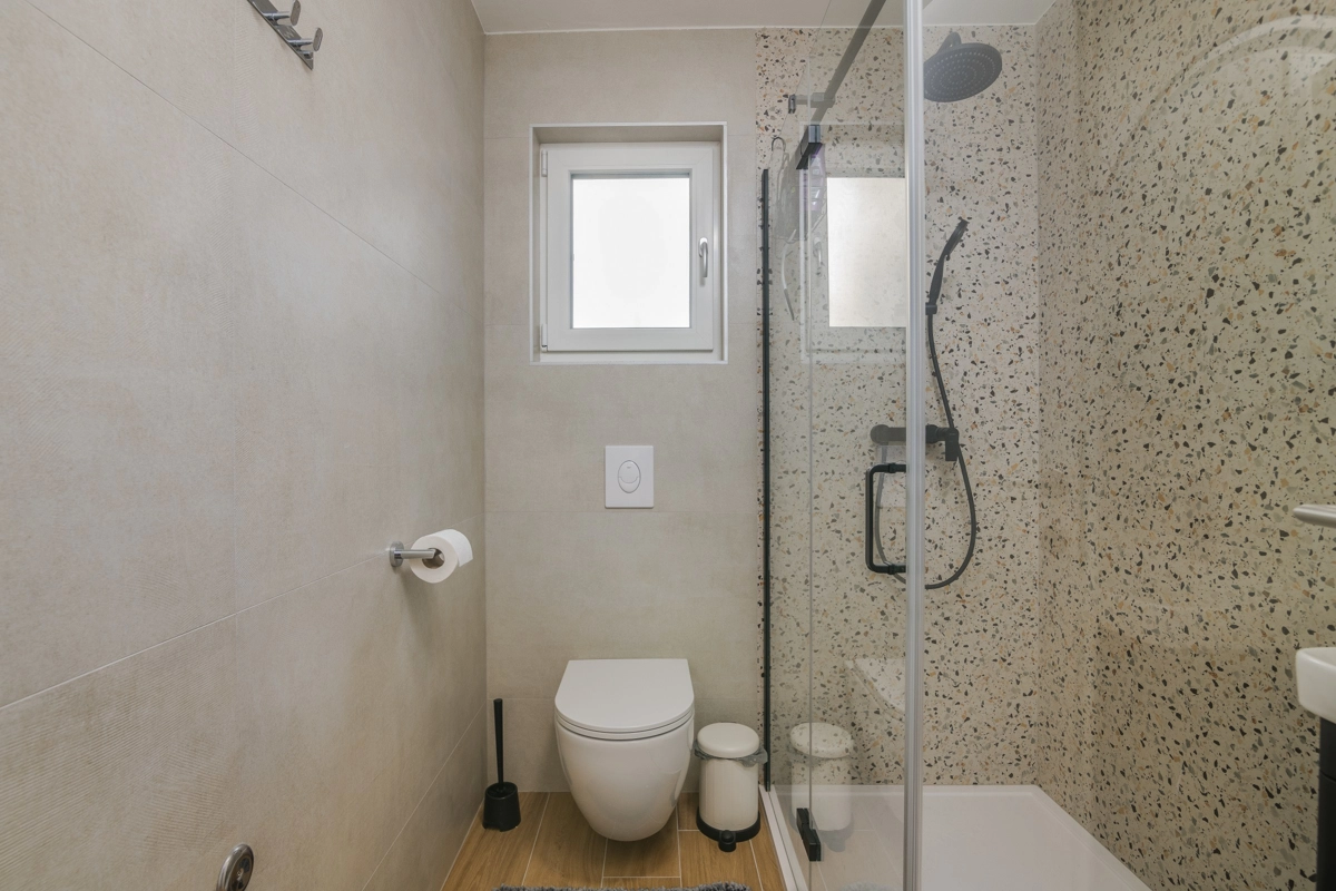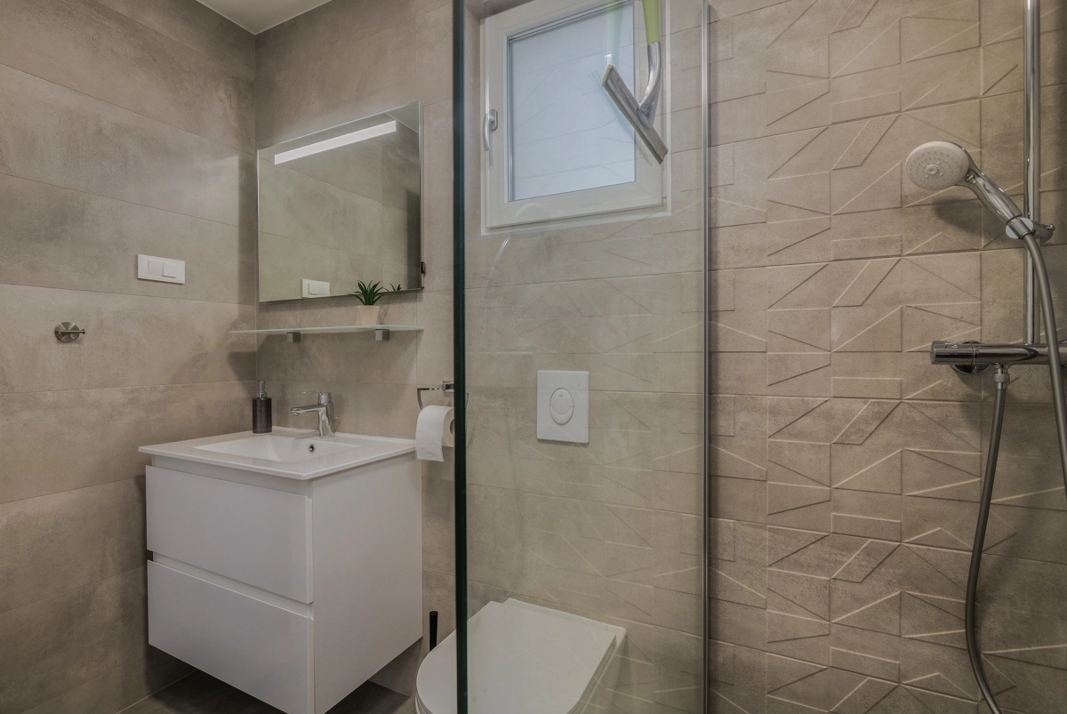 Stan se nalazi na prvom katu stambene zgrade. Apartman ima besplatni WiFi, potpuno opremljenu kuhinju, satelitsku i smart televiziju, klima uređaj te besplatno parkiralište. Sa balkona se pruža lijep pogled na obližnju šumu i okolicu. Apartman se sastoji od dnevnog boravka s blagovaonicom i kuhinjom, dvije udobne spavaće sobe s bračnim krevetima (od kojih jedna ima vlastitu kupaonicu), dodatne kupaonice s wc-om i tušem te lijepe terase na koju se izlazi iz dnevnog boravka. Obje spavaće sobe imaju ormare i klima uređaje.