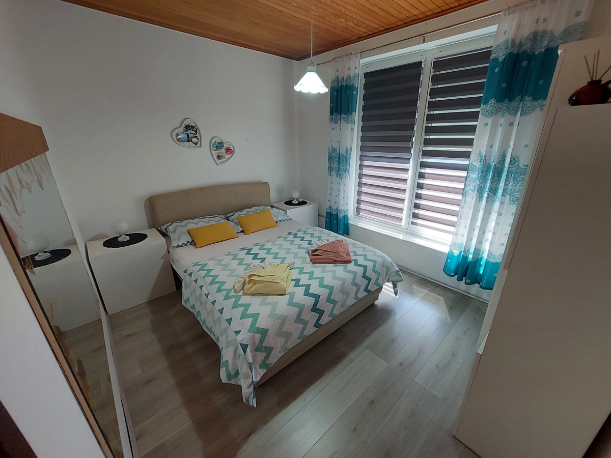 Apartman Zlatko nalazi se na prvom katu. Sastoji se od spavaće sobe, kuhinje, kupaonice, dnevnog boravka u kojem se nalazi pomoćni ležaj i malog balkona. Apartman ima klimu, wi-fi, perilicu rublja, parking u vrtu, kao i roštilj sa vrtnom garniturom.
