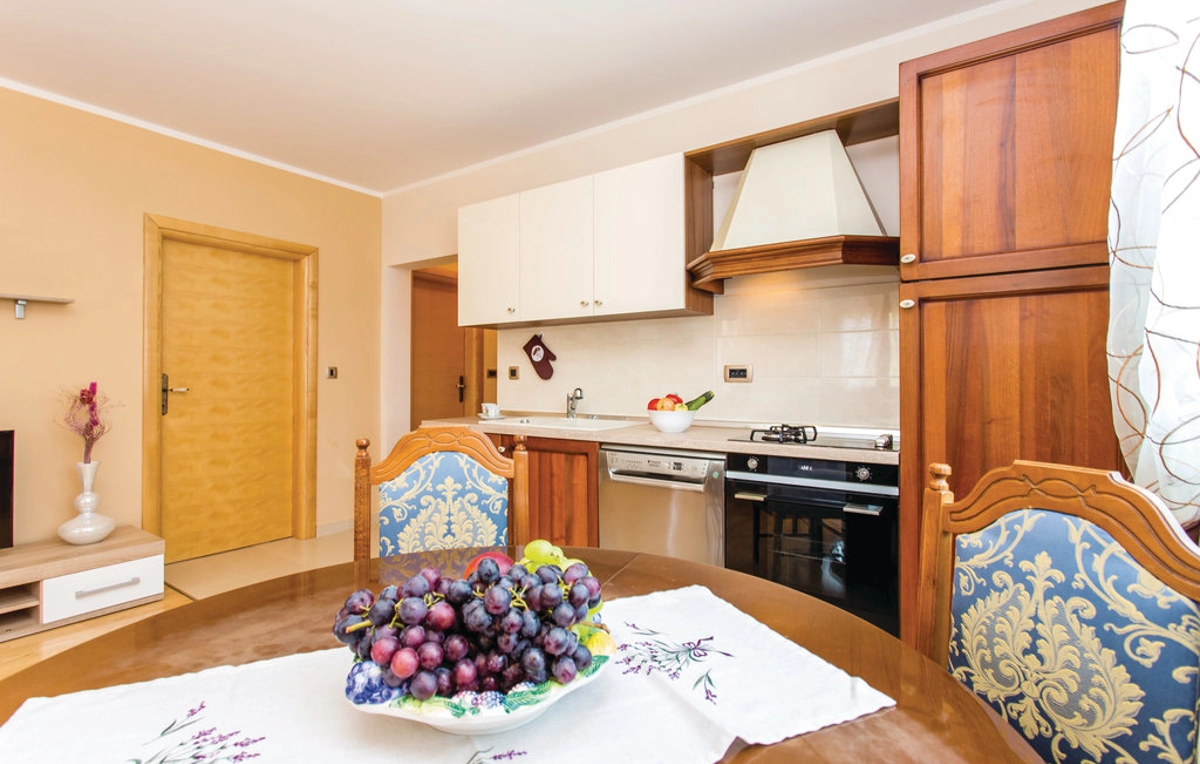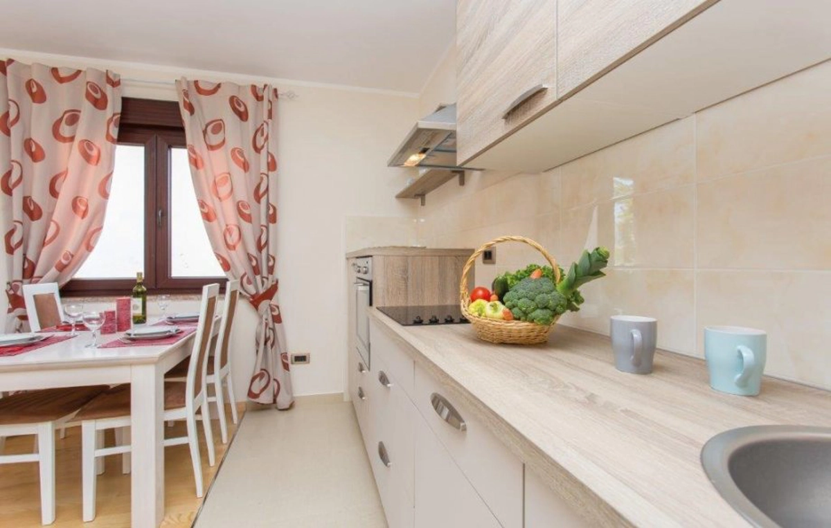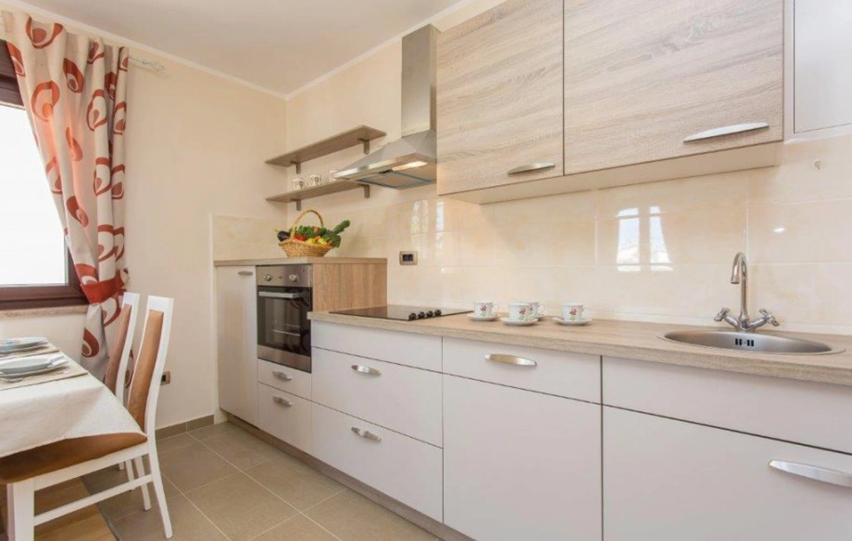 Lijepi apartman Stefano 2 za 2-4 osobe nalazi se na prvom katu obiteljske kuće. Sastoji se od dvokrevetne sobe s TV-om, dnevnog boravka s kaučem na razvlačenje za 2 osobe, klime, SAT TV-a i izlazom na namješteni balkon s pogledom na more, potpuno opremljene kuhinje (hladnjak, zamrzivač, štednjak, pećnica, toster, perilica posuđa , aparat za kavu), blagovaona i kupaonica (tuš, WC, bide, sušilo za kosu, perilica rublja). Parking je osiguran na posjedu. Gostima je na raspolaganju zajednička sjenica s roštiljem u vrtu.