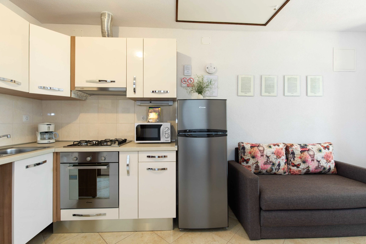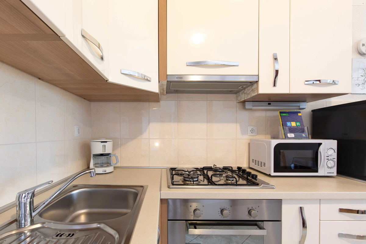 The apartment is located on the first floor of a family house. The distance of 2000 m from the beach and the sea and the quiet location will make your vacation pleasant.