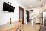It consists of a kitchen, dining room and living room in one room, 2 bedrooms and a bathroom. There is a small terrace at the entrance to the apartment, and both rooms have access to a 20 m2 balcony with a beautiful view of the sea.