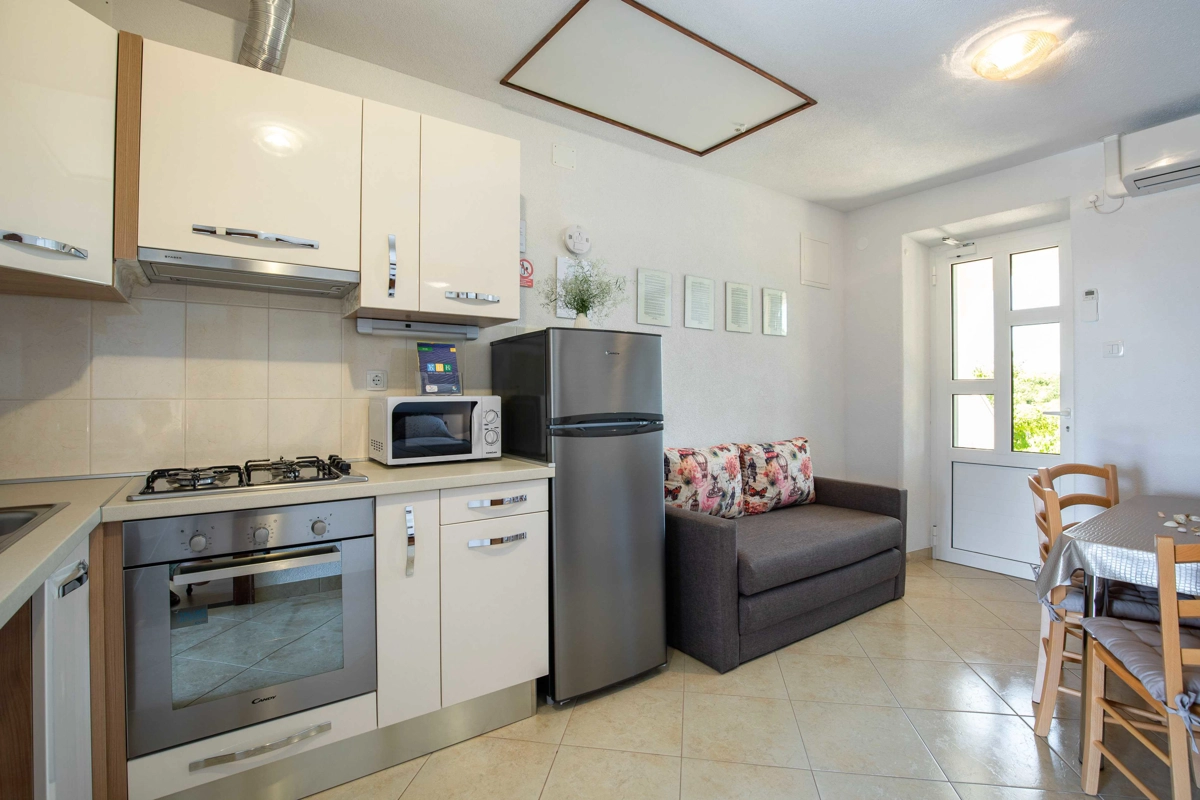 Apartment Brigitte is located in the small tourist town of Risika, known for its beautiful sandy beach of St. Marak. Risika is only 8 km from the tourist town of Šilo and 4 km from the town of Vrbnik. The apartment is located on the first floor of a family house. The distance of 2000 m from the beach and the sea and the quiet location will make your vacation pleasant.