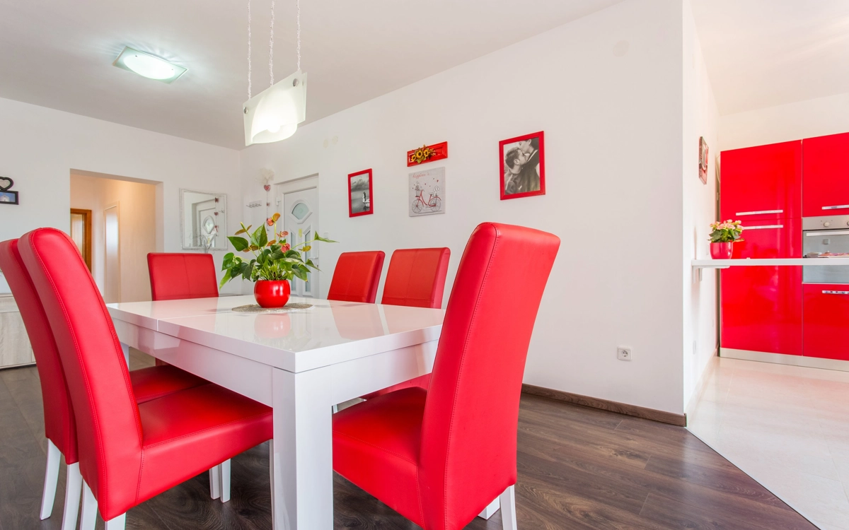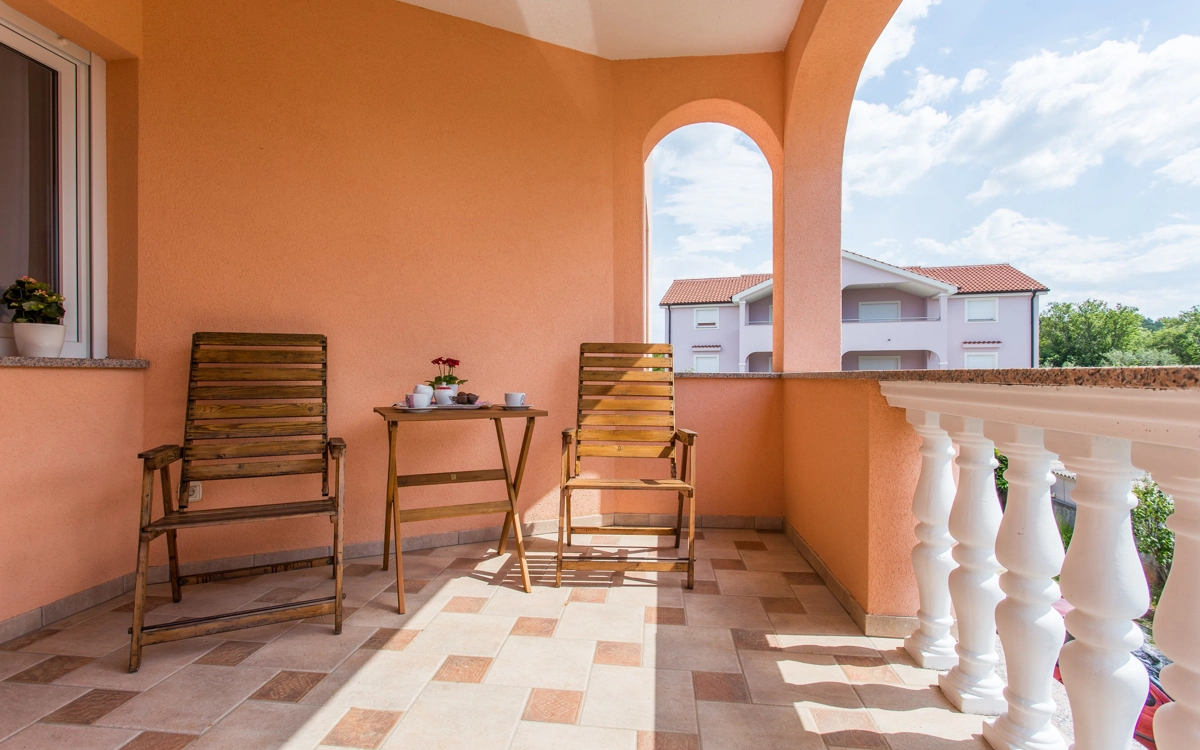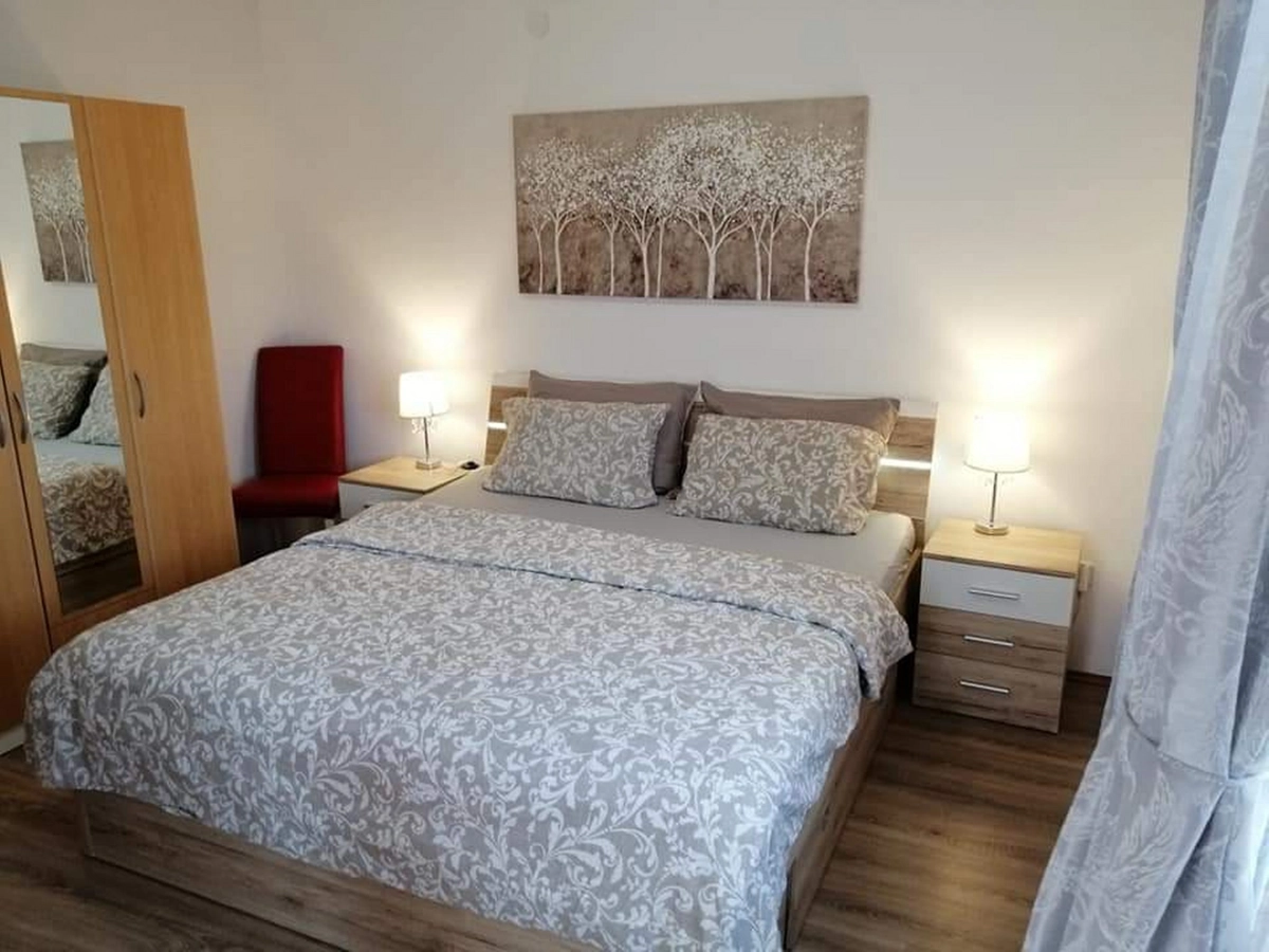 Beautiful apartment Lana is located in a private family house on the 1st floor. It consists of a living room, dining area, fully equipped kitchen, bathroom and two bedrooms. The apartment also has two lovely balconies that are equipped with outdoor furniture . Inside the garden you will find a barbecue and you can park your cars freely in the parking lot inside the yard.
