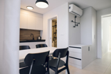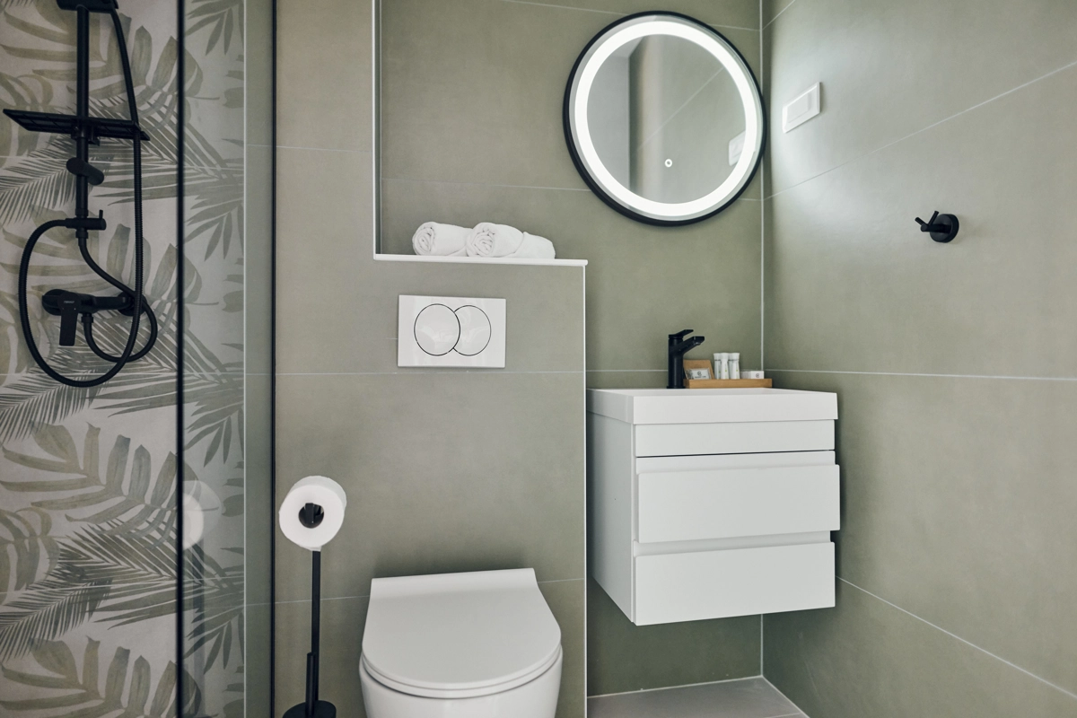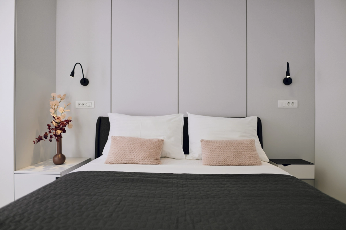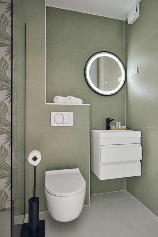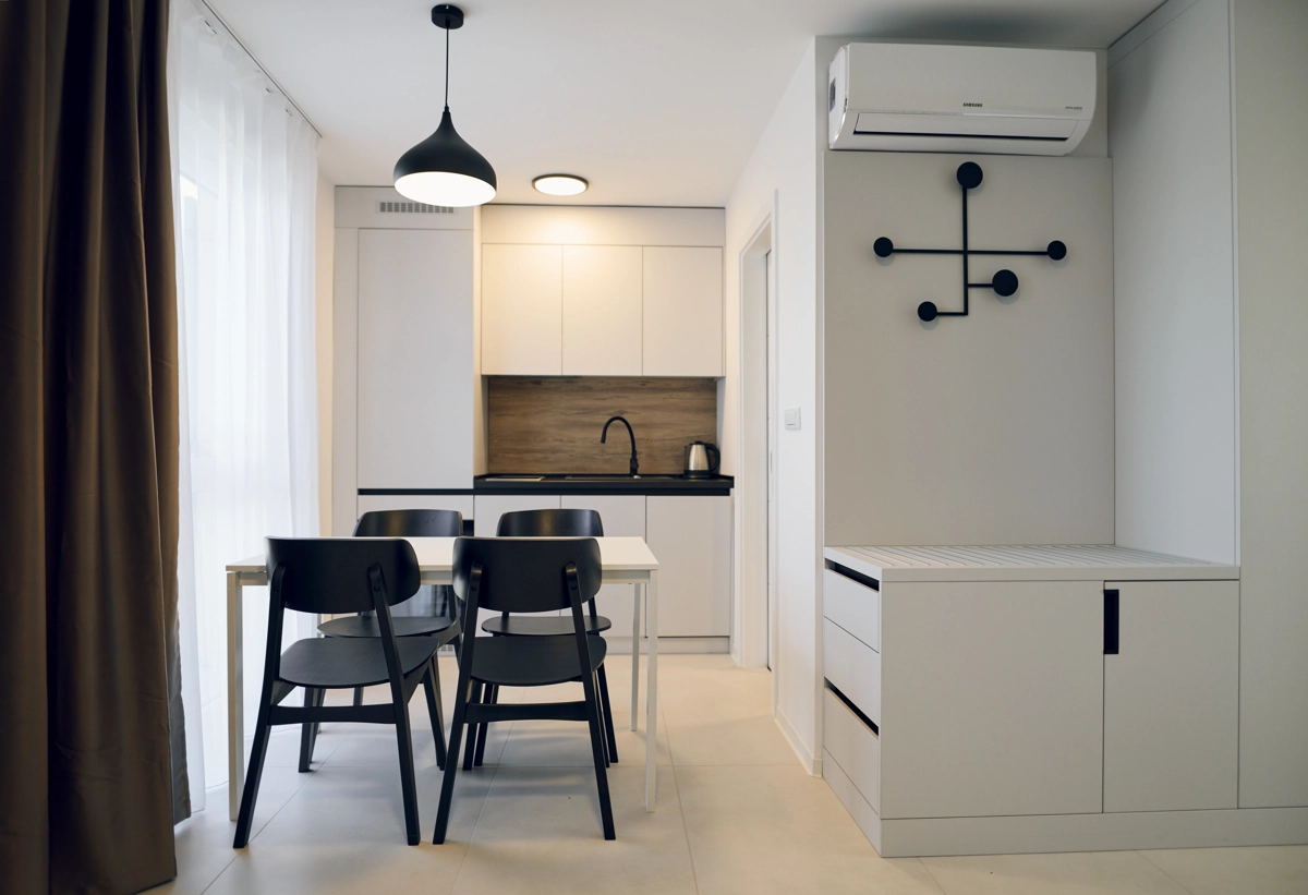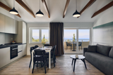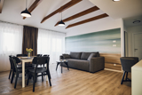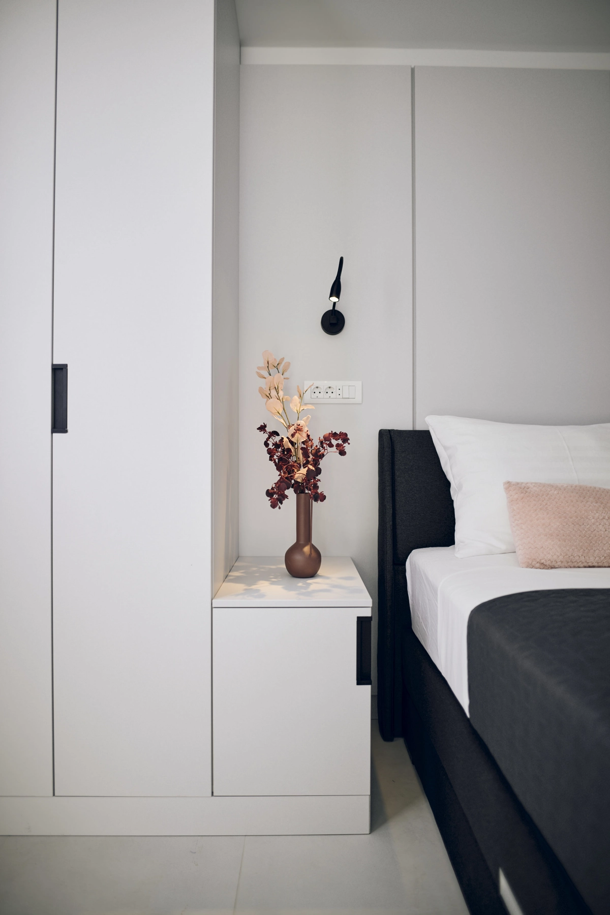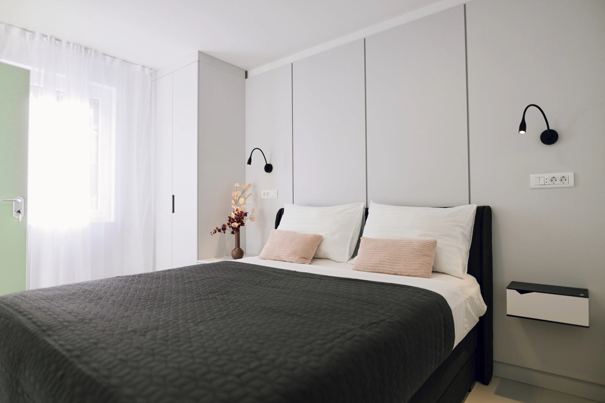 They are characterized by soft pastel colors, modern furniture, plenty of daylight and a spacious balcony or terrace with a view of the pine forest or the mountains. Each apartment is air-conditioned and consists of one or more bedrooms, a bathroom with a shower cabin and a washing machine, a living room with a comfortable couch for an additional 2 people, a dining room and a functional kitchen equipped with a refrigerator. with freezer, dishwasher, oven, electric stove, kettle and basic cooking utensils.