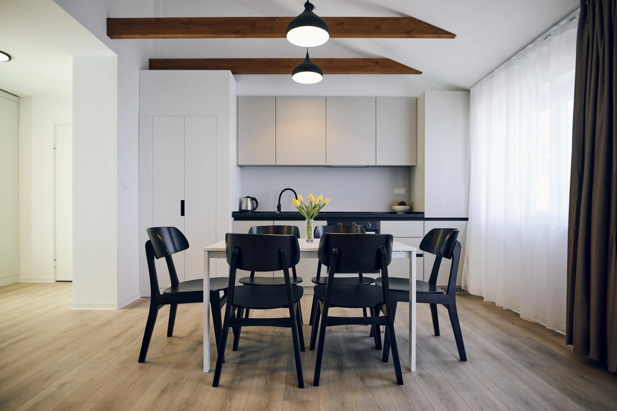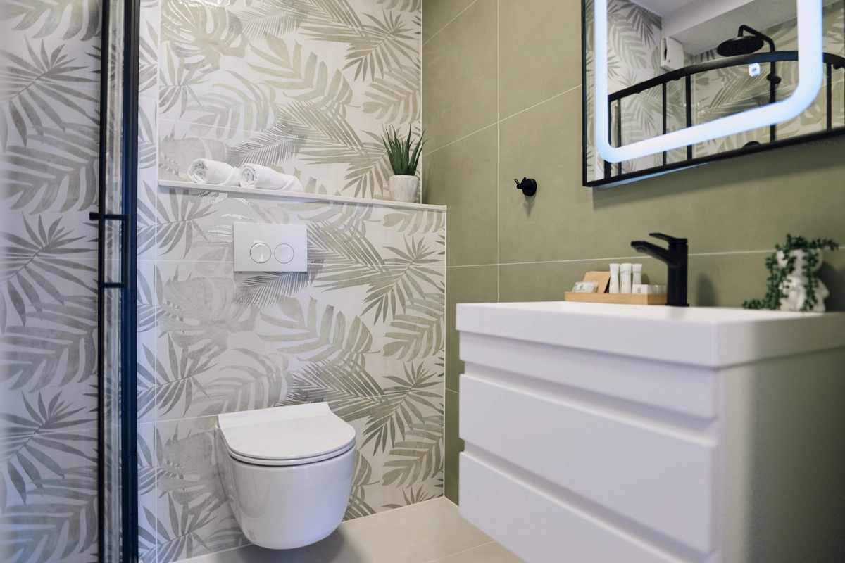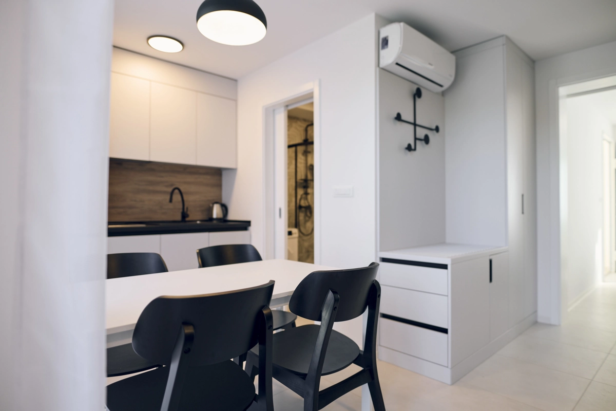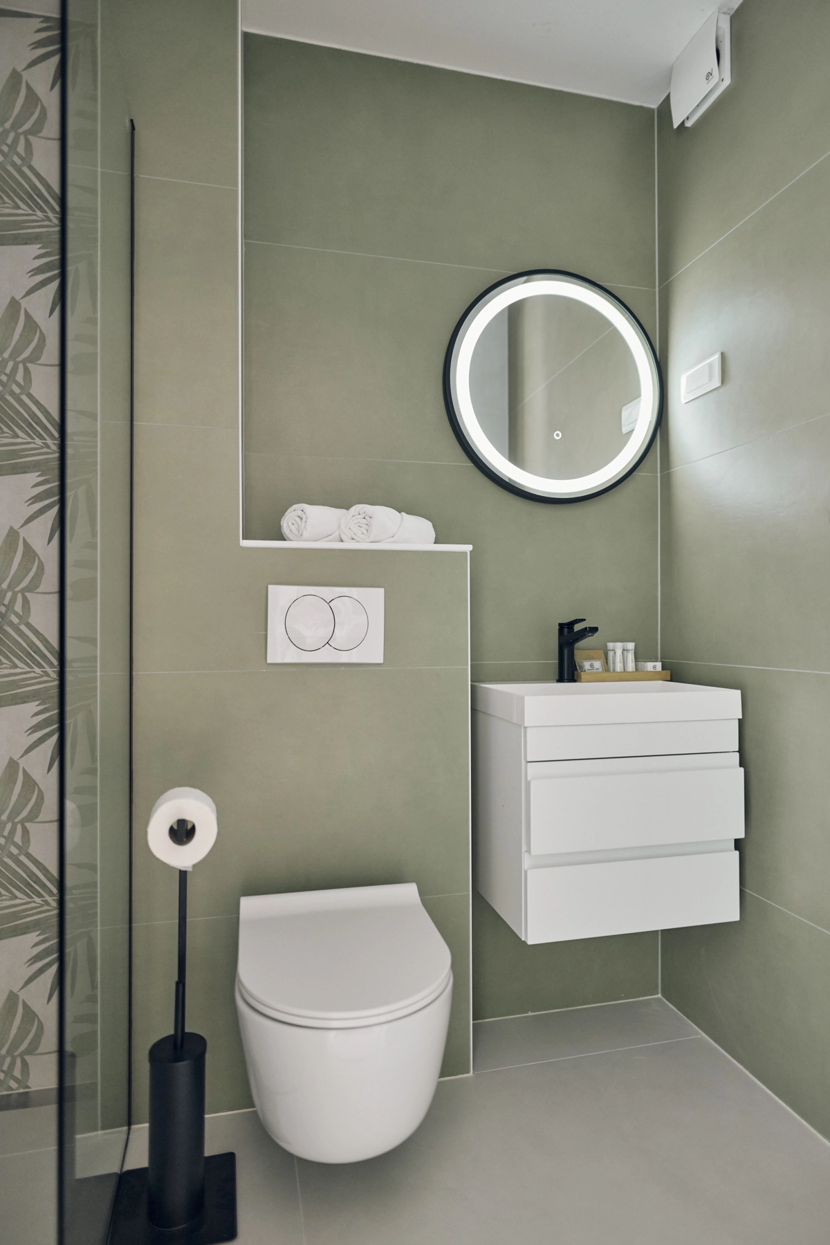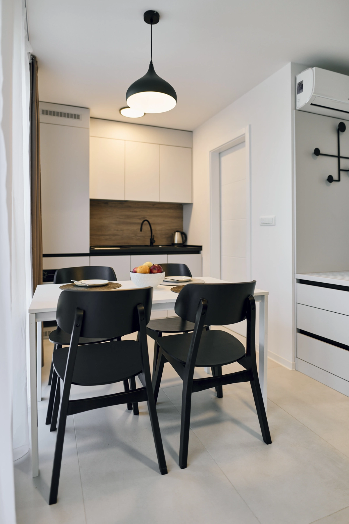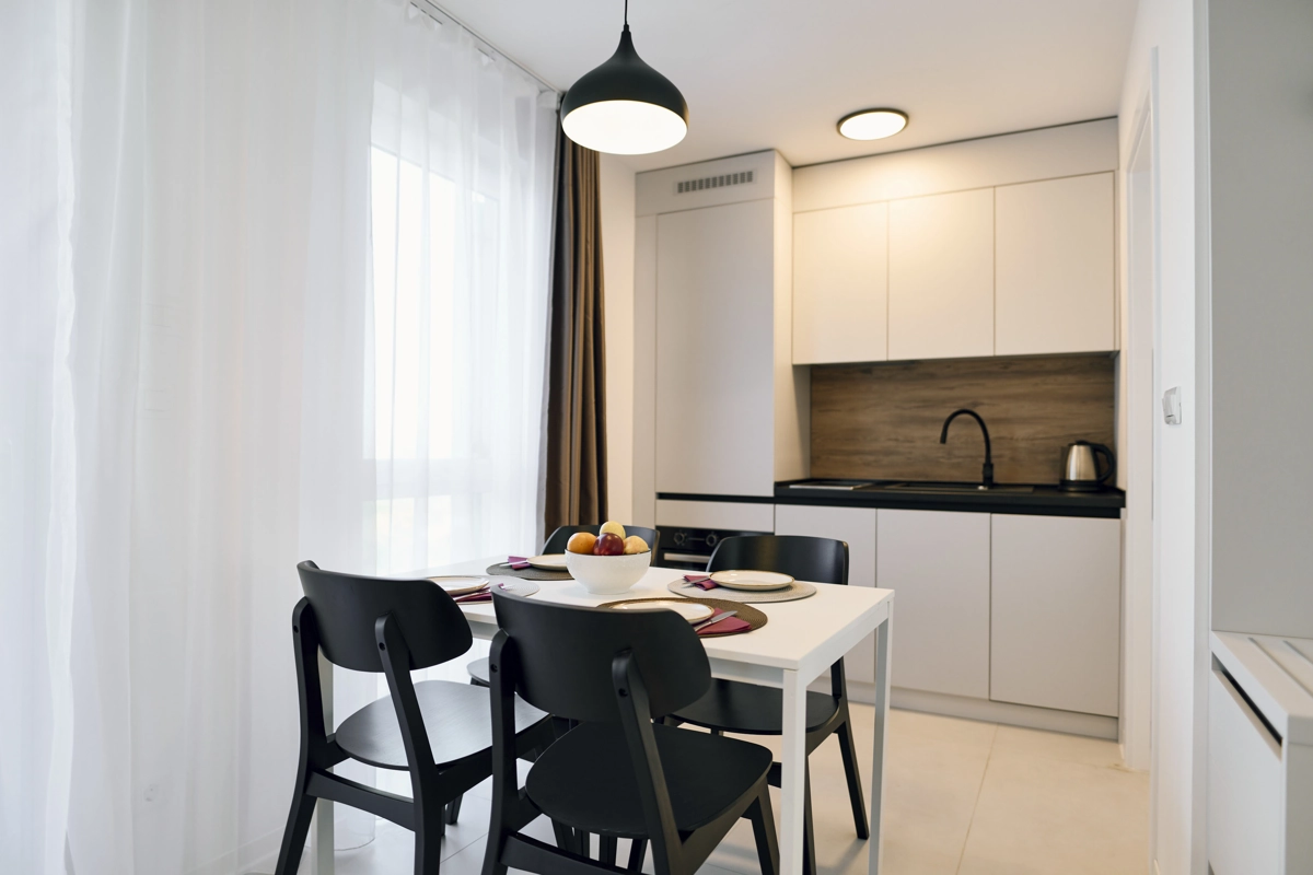 They are characterized by soft pastel colors, modern furniture, plenty of daylight and a spacious balcony or terrace with a view of the pine forest or the mountains. Each apartment is air-conditioned and consists of one or more bedrooms, a bathroom with a shower cabin and a washing machine, a living room with a comfortable couch for an additional 2 people, a dining room and a functional kitchen equipped with a refrigerator. with freezer, dishwasher, oven, electric stove, kettle and basic cooking utensils.