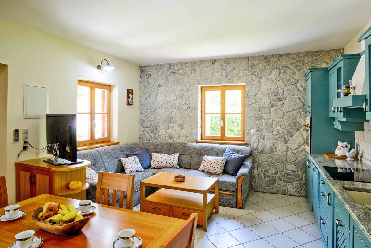 This gem, located in Vantačići, approximately 2 km from Malinska, 250 m from the Vantačići beach, offers you a holiday, in a stone house surrounded by a carefully landscaped courtyard and a garden with associated parking. Stone house Luka is on the ground floor surrounded with greenery with no steps at the private entrance, parking lot is in the yard.